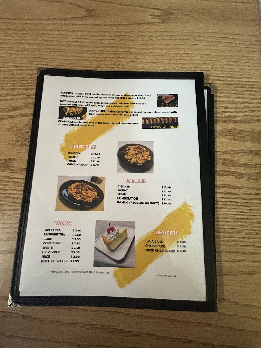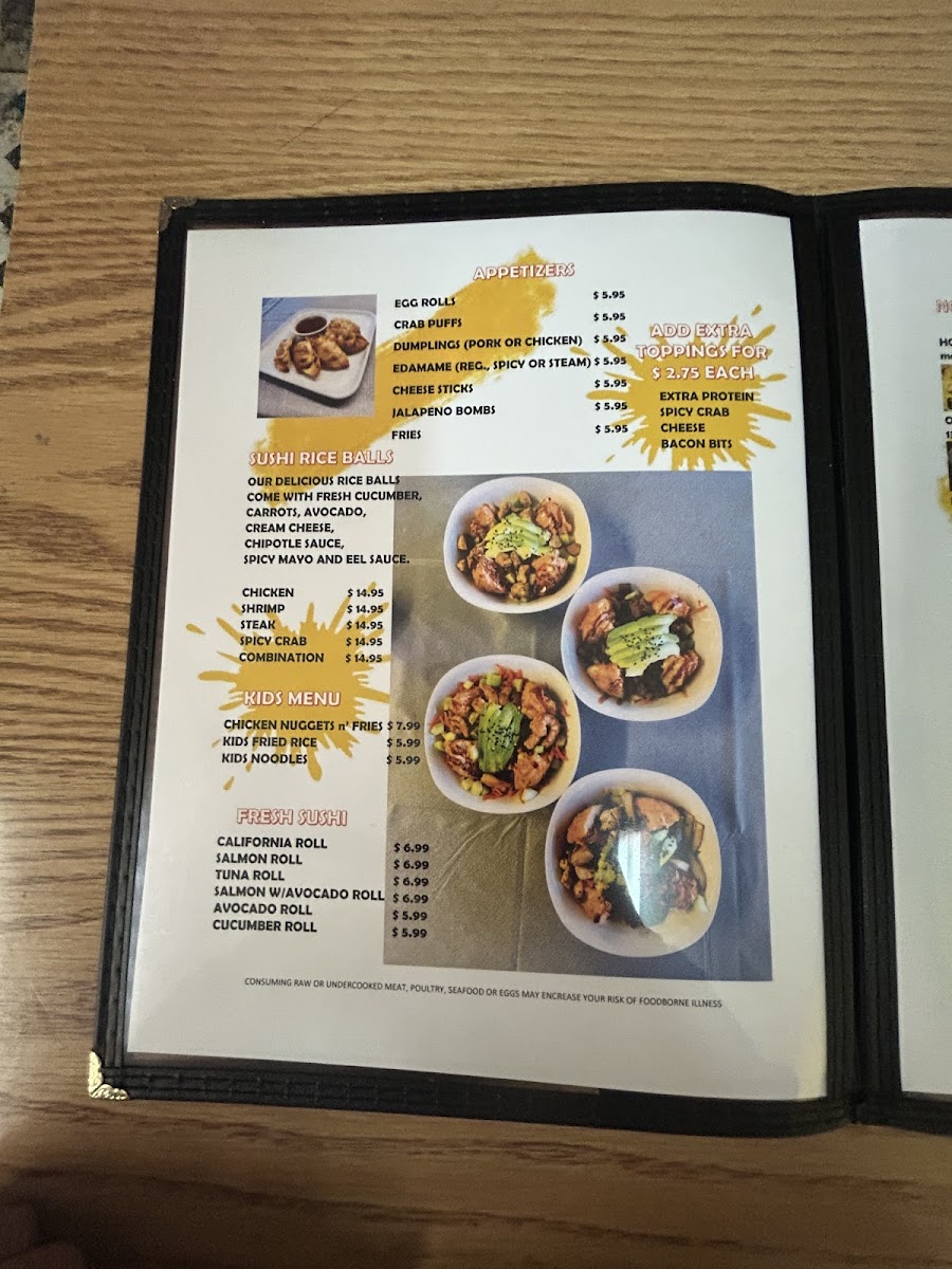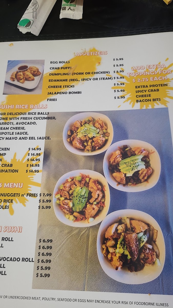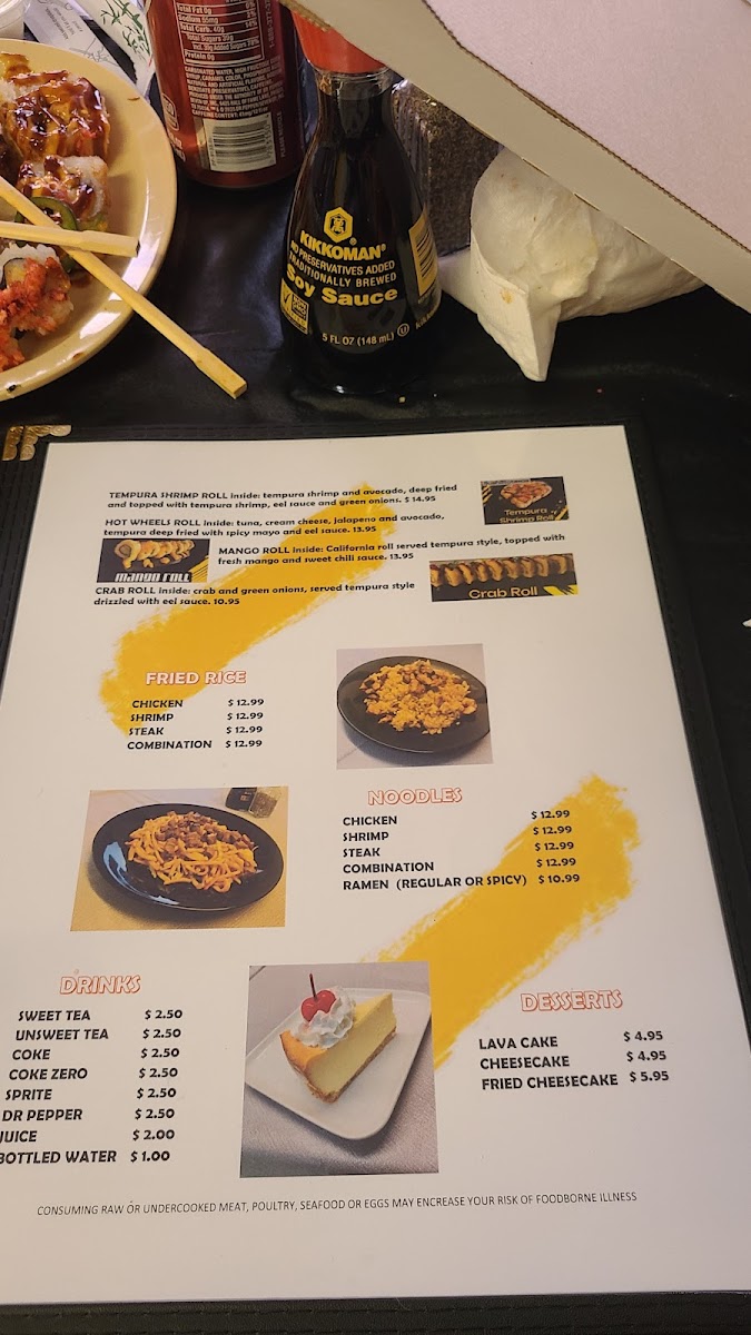 Don't miss the signature Sushi Rice Balls, available in flavors like chicken, shrimp, and steak, all accompanied by refreshing cucumber and creamy sauces for $14.95. Sweeten your meal with delightful desserts like the rich Lava Cake and Fried Cheesecake.